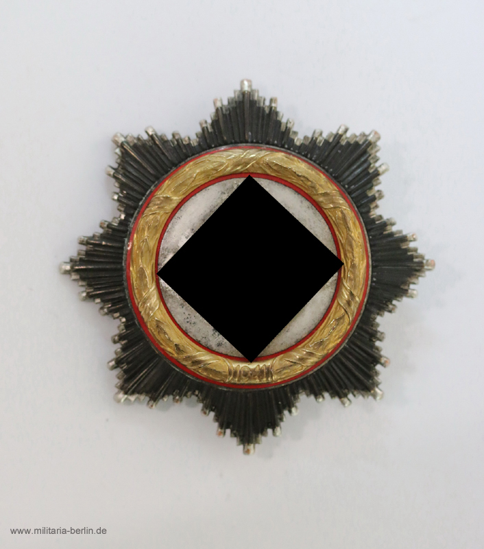 Das Deutsche Kreuz ist ein achtstrahliger Bruststern aus versilberten Metall. Auf diesen ersten Stern als Grundplatte ist ein zweiter etwas kleinerer Stern aus geschwärzten Metall aufgelegt. Auf ihm befindet sich ein stilisierter Lorbeerkranz aus Gold bzw. Silber, auf dem unten die Jahreszahl der Stiftung „1941“ eingraviert ist. Der Lorbeerkranz umfasste ein schwarz emailliertes Hakenkreuz. Der Durchmesser beträgt 65 mm. Auf der Rückseite des Deutschen Kreuzes befindet sich eine Tragenadel.