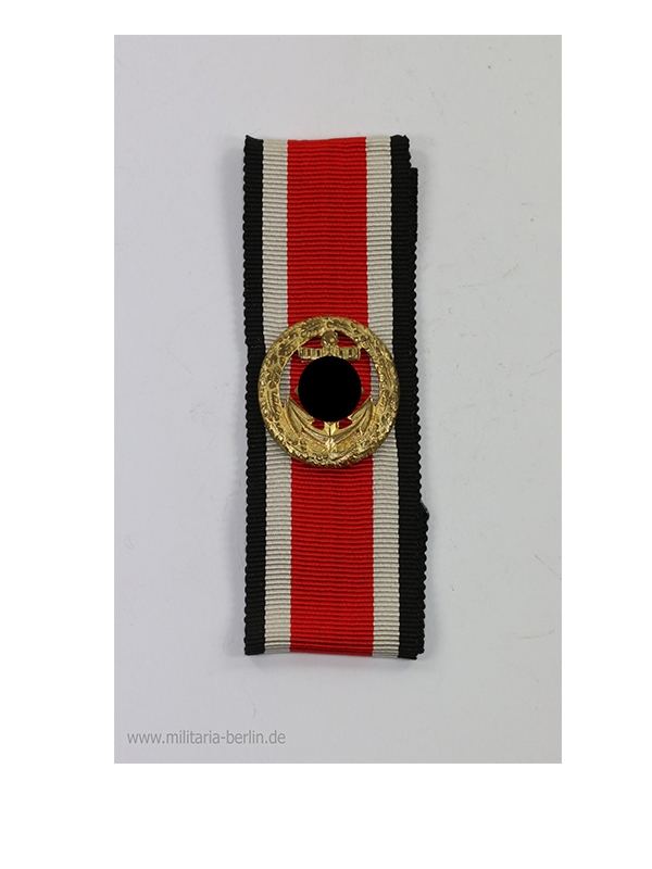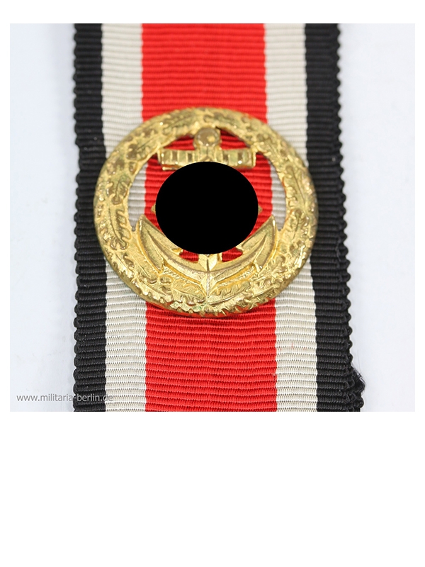 Die Auszeichnung aus vergoldeten Buntmetall zeigt mittig einen Anker als Symbol der Marine. Auf dem Anker befindet sich ein auf der Spitze stehendes Hakenkreuz. Umgeben ist das Hakenkreuz von einem feinen Kranz aus Eichenlaub. Das Abzeichen ist hohlgeprägt. Rückseitig befinden sich vier Splinte aus Runddraht zur Befestigung auf dem Trageband. Der Bereich zwischen Anker und Kranz ist unterhalb der Anker Arme nicht(!) ausgestanzt. Die Maße sind ca. 24 x 24 mm. Das Gewicht beträgt ca. 2,5 g. Hergestellt wurde die Spange durch die Firma Otto Klein, Hanau.