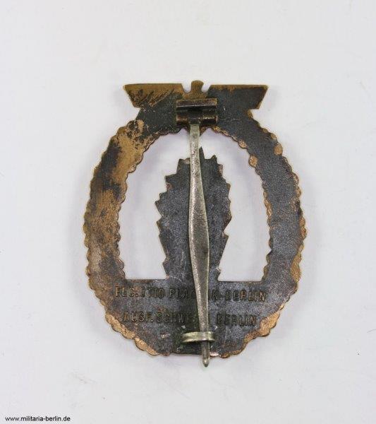 Der häufigste Hersteller dieses Abzeichens war die Firma Schwerin Berlin, diese Abzeichen sind rückseitig markiert mit „FEC. Adolf Bock Ausf. Schwerin Berlin“. Es gibt aber noch etliche andere Hersteller.