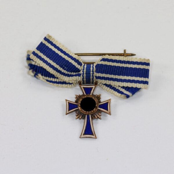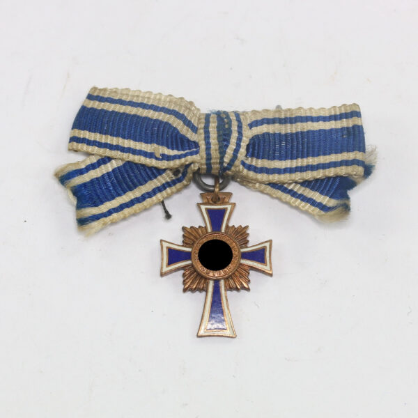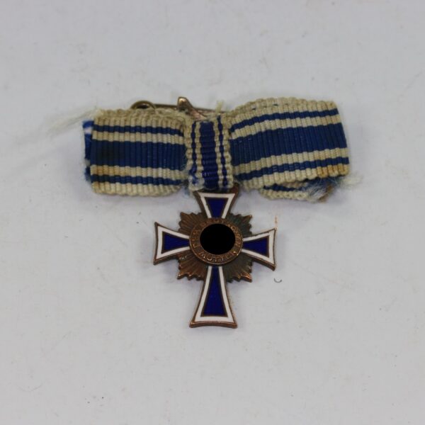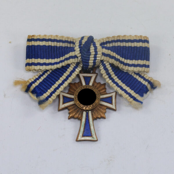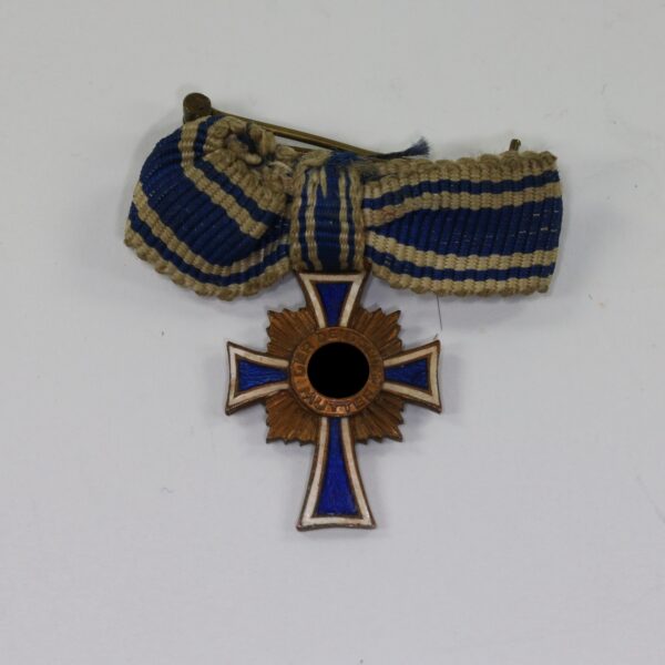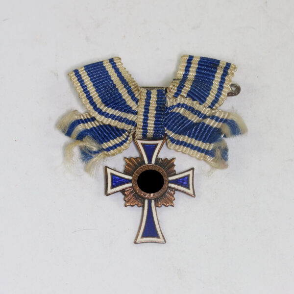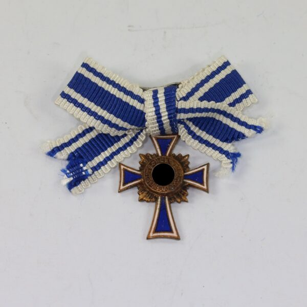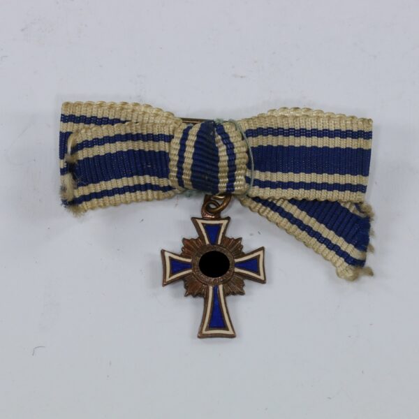 Miniatur Mutterkreuz in Bronze an Schleife, Hst. L/14, Hortfund