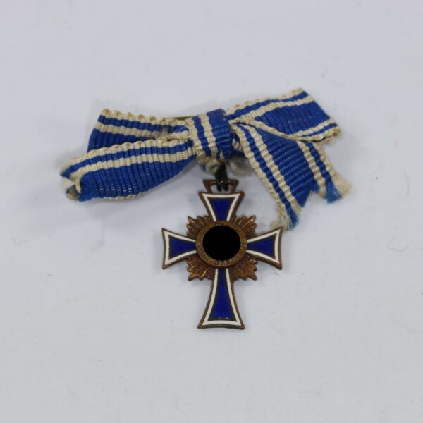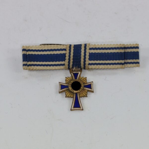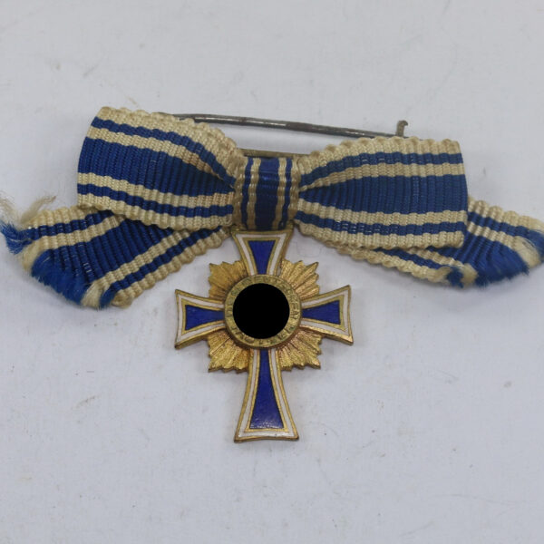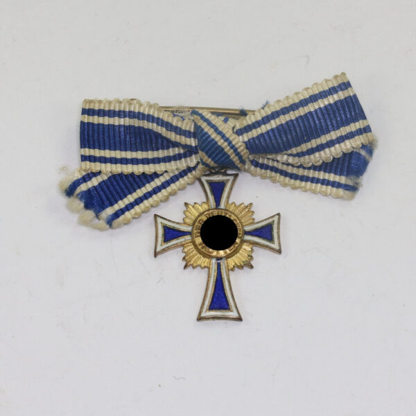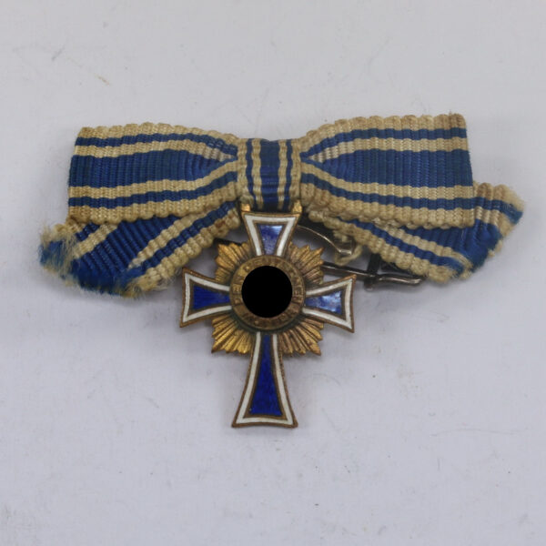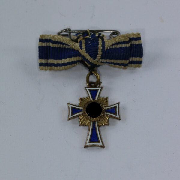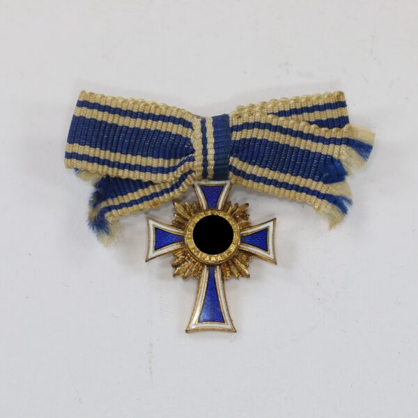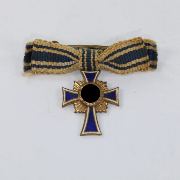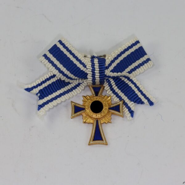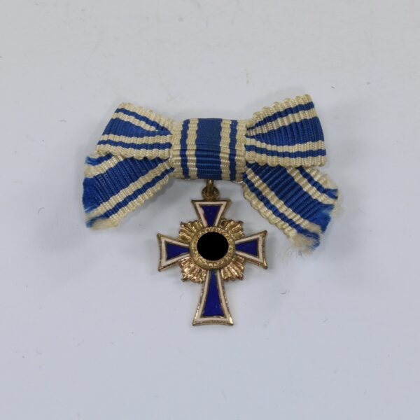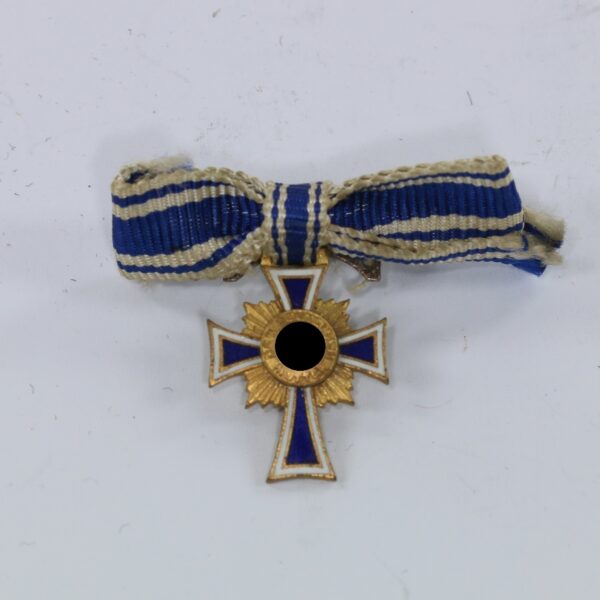 Miniatur Mutterkreuz in Gold an Schleife, Hst. L/11, Hortfund (!)