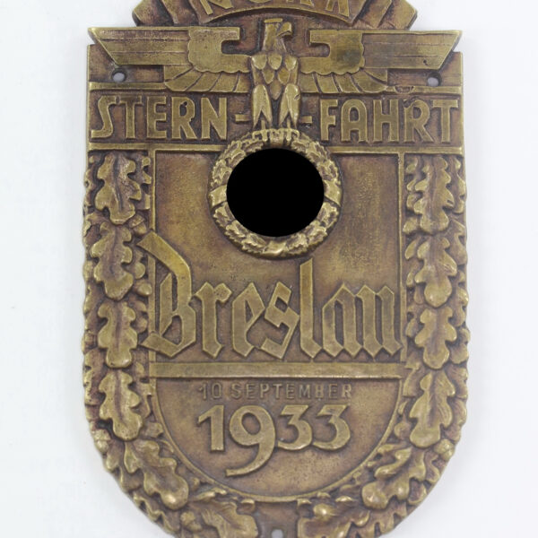 NSKK Plakette Sternfahrt Breslau 10. September 1933, Hst. .Zobel Breslau