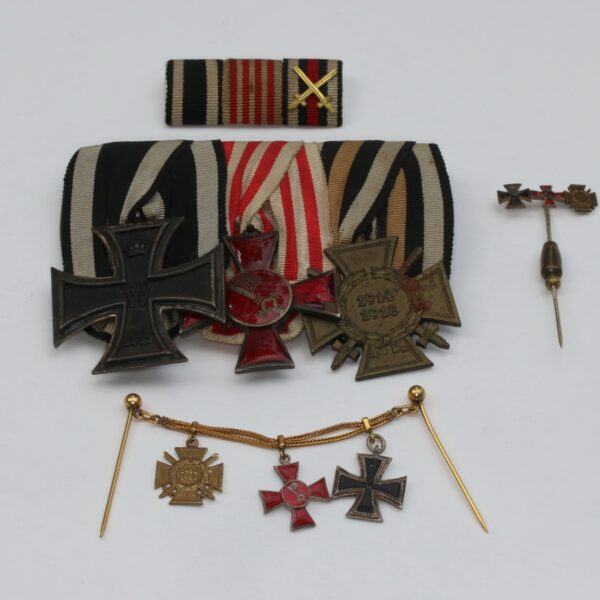 Ordenschnalle 3X, Friedrich August Medaille Silber, EFK, Weltkriegsmedaille Ungarn