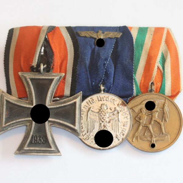 Ordensschnalle 3X, EK-2 1939, Wehrmachtsdienstauszeichnung, Memellandmedaille