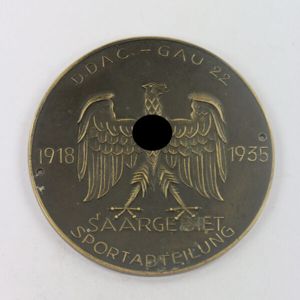 Plakette, DDAC – Gau 22 1918 – 1935 Saargebiet Sportabteilung, Hst. Redo Saarlouis