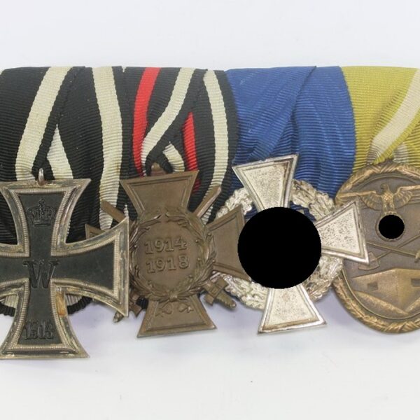 Ordensschnalle 4X, EK-2 1914, EFK, TDE 25, Schutzwall Medaille