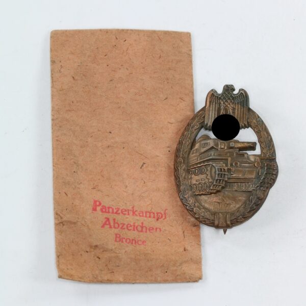 Panzerkampfabzeichen in Bronze, Hst. R.S., in Verleihungstüte