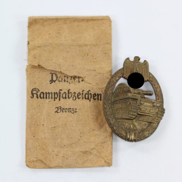 Panzerkampfabzeichen in Bronze, Steinhauer & Lück, in Verleihungstüte (!)