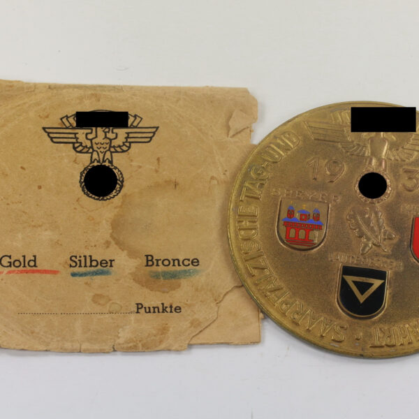Plakette NSFK Saarpfälzische Tag und Nachtorientierungsfahrt 1939, in Verleihungstüte