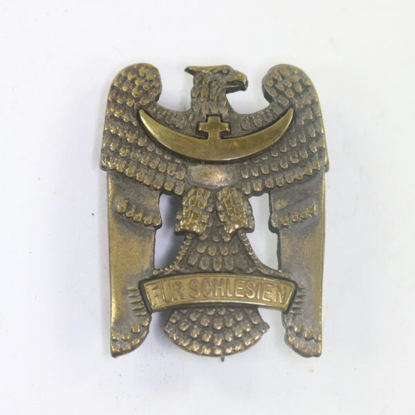 Schlesischer Adler 2. Stufe mit Eichenlaub und Schwertern – Für Schlesien (Buntmetall)