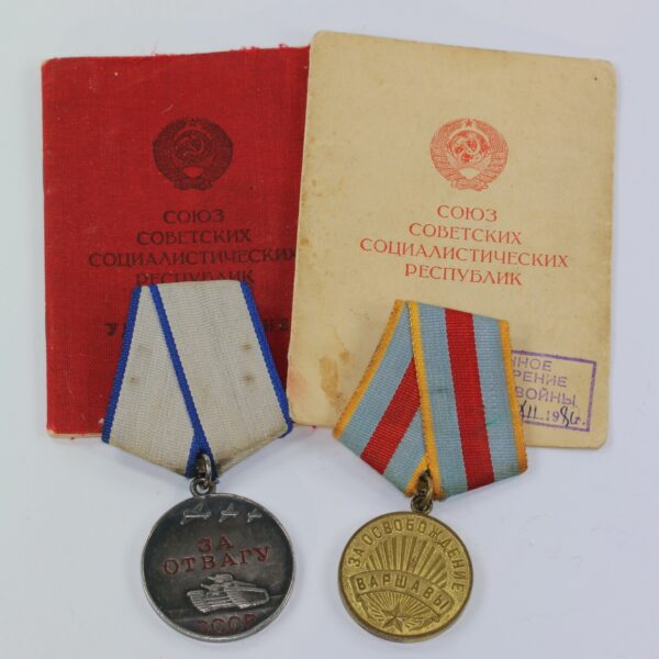Sowjetunion, Gruppe Tapferkeitsmedaille und Warschau Medaille mit Papiere