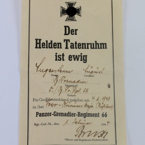 Sterbekarte, Der Helden Tatenruhm ist ewig – Panzer-Grenadier-Regiment 66
