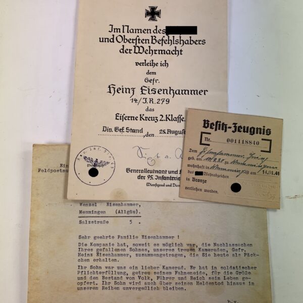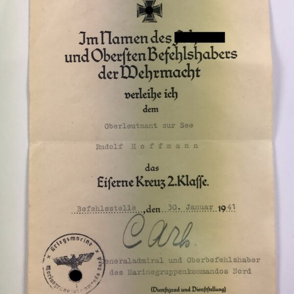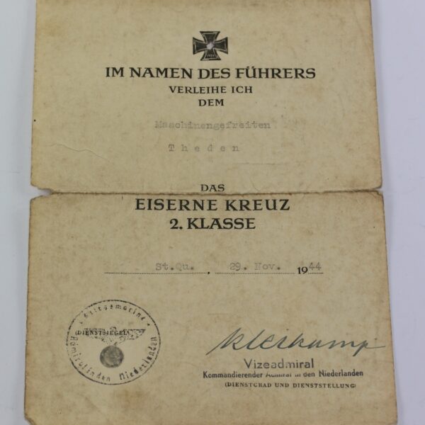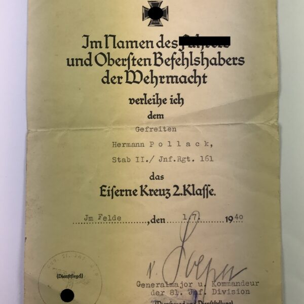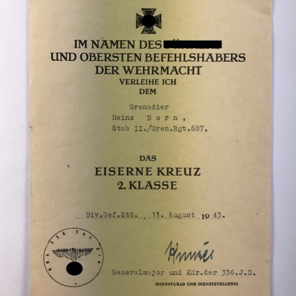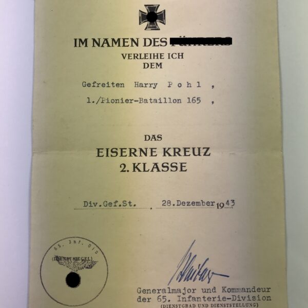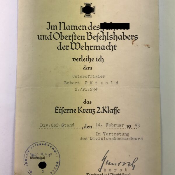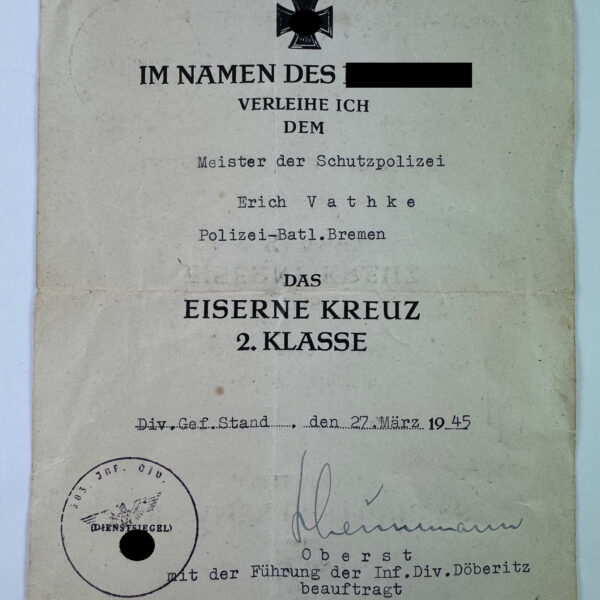 Urkunde Eisernes Kreuz 2. Klasse, März 1945, Infanterie Division Döberitz