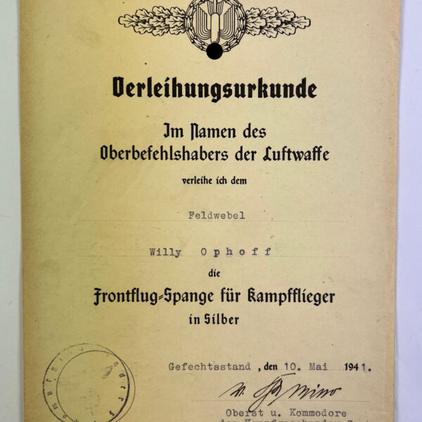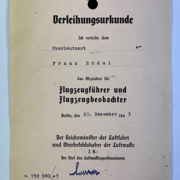 Urkunde Flugzeugführer und Flugzeugbeobachter (Doppelabzeichen)