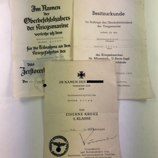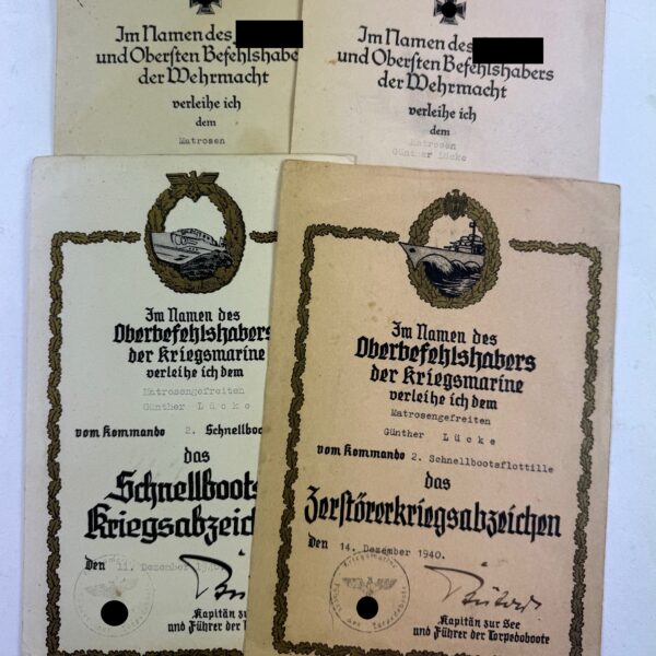 Urkunden Gruppe Kriegsmarine 2. Schnellbootsflottille (2 x Schmuckurkunde)