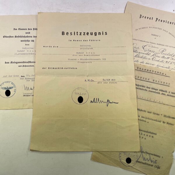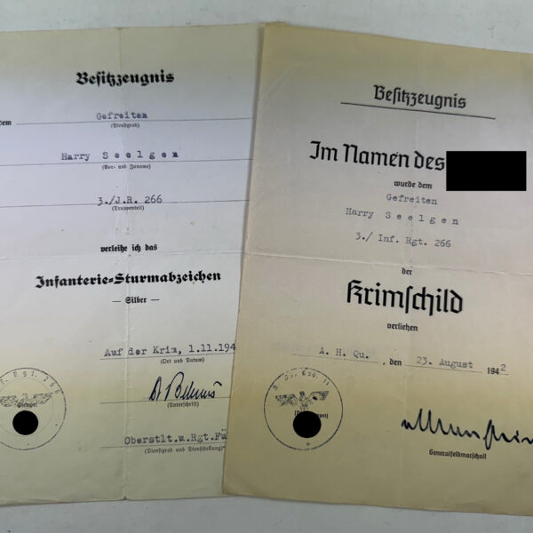 Urkunden Gruppe Krim, Krimschild + Sturmabzeichen. Infanterie Regiment 266