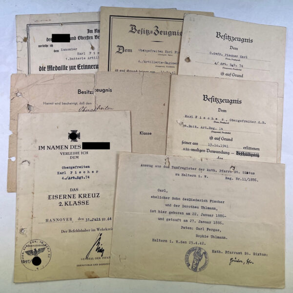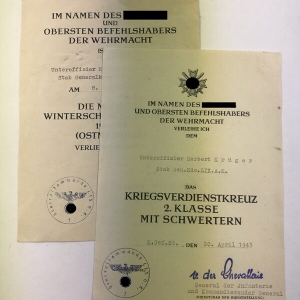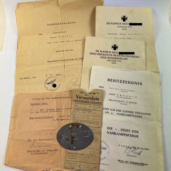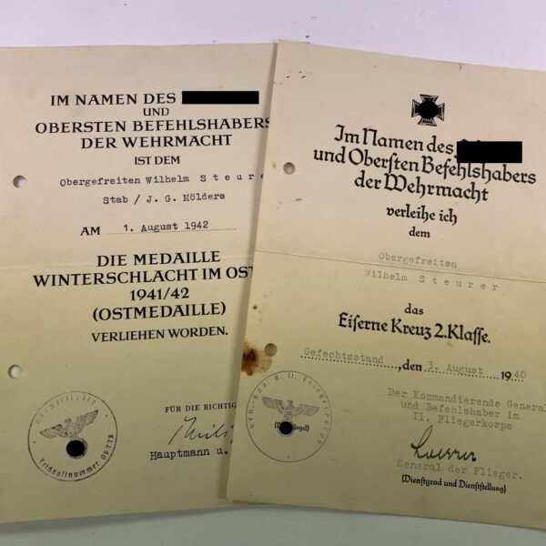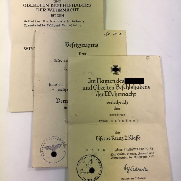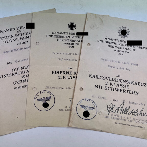 Urkunden Gruppe Verpflegungsamt 707 (707 Infanterie Division)