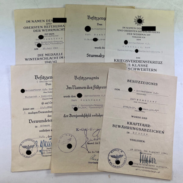 Urkunden Gruppe Waffen SS Division Totenkopf