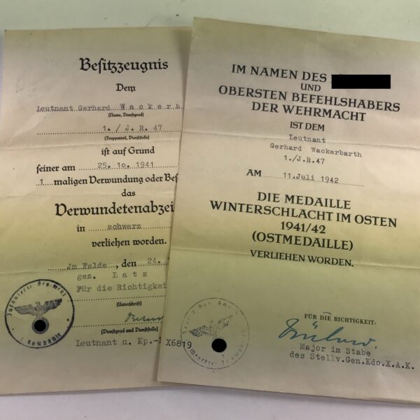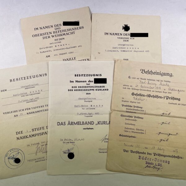 Urkunden Nachlass Kurland / Nahkampfspange, Obergefreiten Karl-Heinz Menke