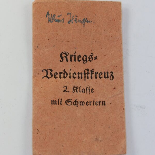 Verleihungstüte Kriegsverdienstkreuz 2. Klasse mit Schwertern, Karl Hensler