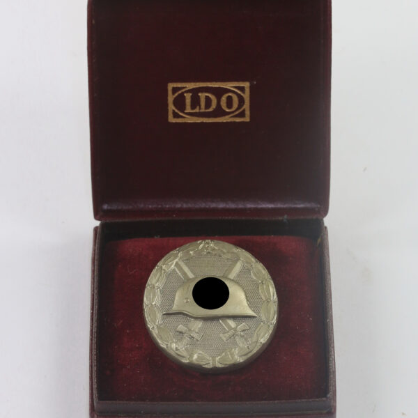 Verwundetenabzeichen in Silber 1939, Hst. L/56 (Buntmetall), im LDO Etui