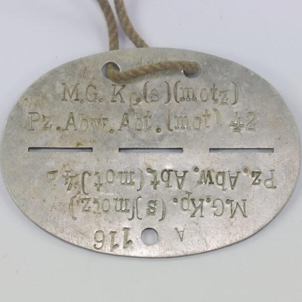Wehrmacht Heer, Erkennungsmarke M.G. Kompanie Panzerabwehr Abteilung 42