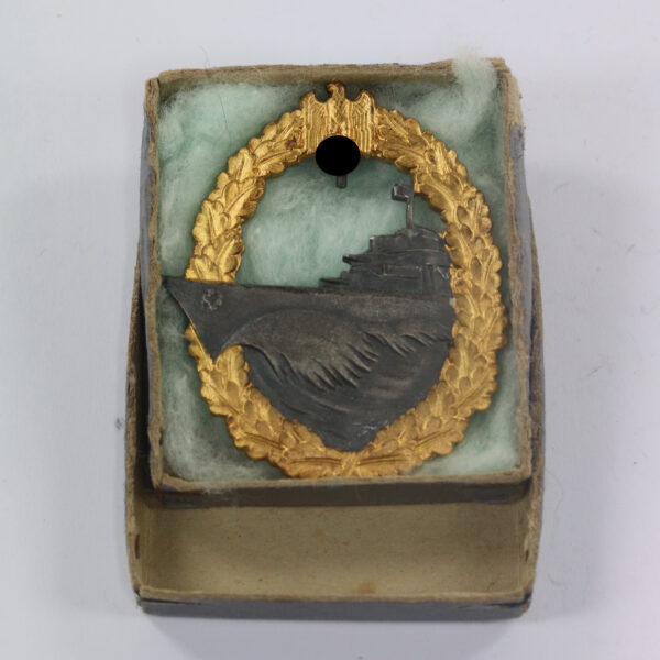 Zerstörer Kriegsabzeichen, Hst. Schwerin Berlin 68, in Verleihungsschatel