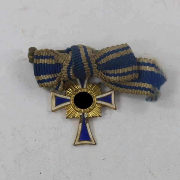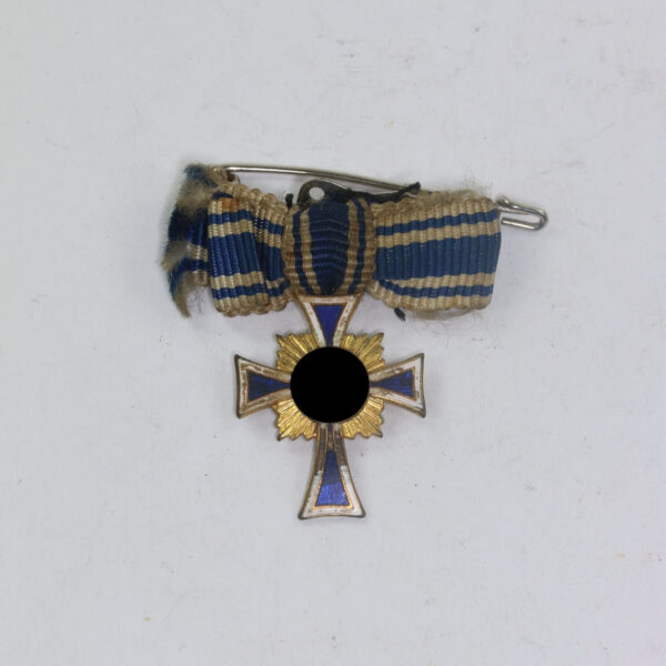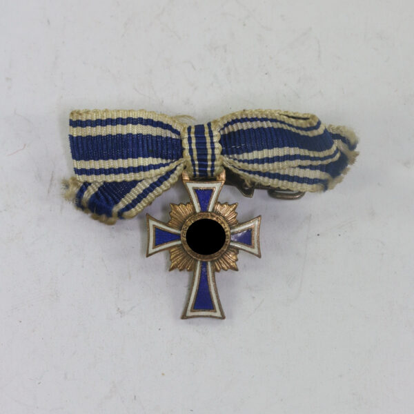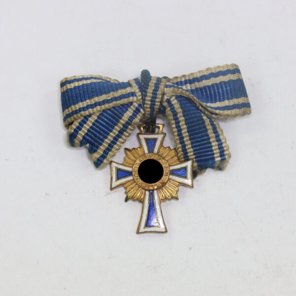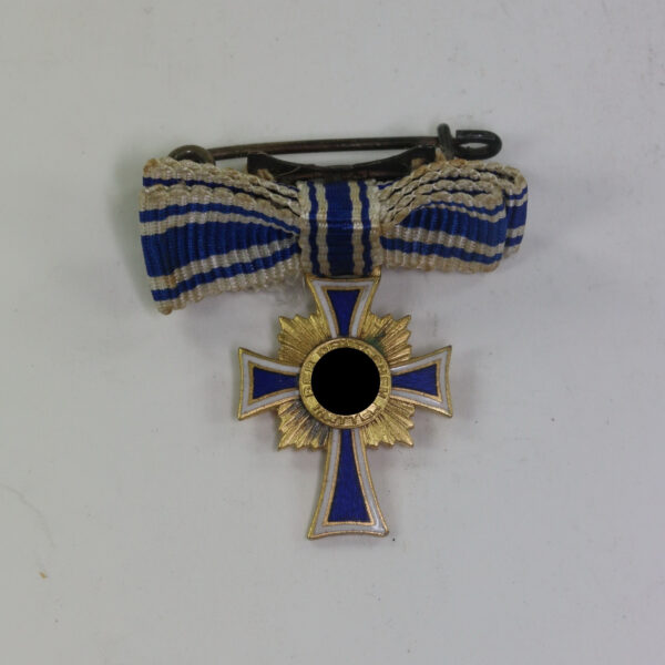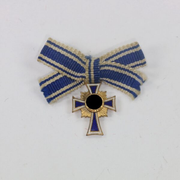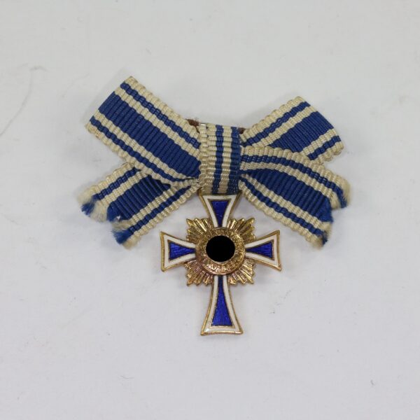 Miniatur Mutterkreuz in Gold an Schleife, Hst. L/14 (Friedrich Orth, Wien)
