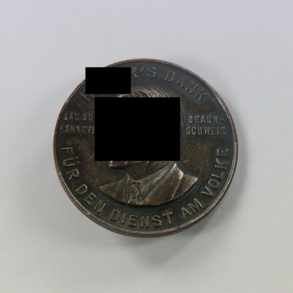 Abzeichen, Hitlers Dank für den Dienst am Volk Gau Süd Hanover Braunschweig