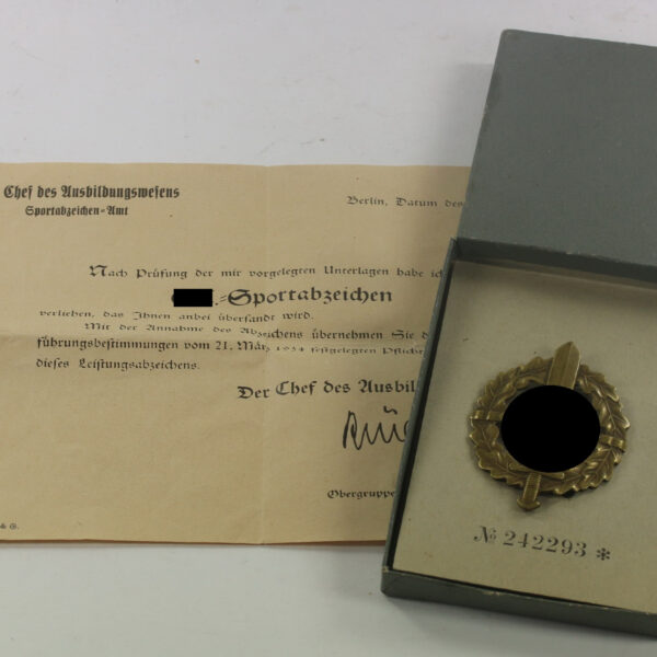 SA-Sportabzeichen in Bronze, Eigentum d. Sportabzeichen Haup. Stelle, Hst. Fechler