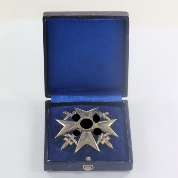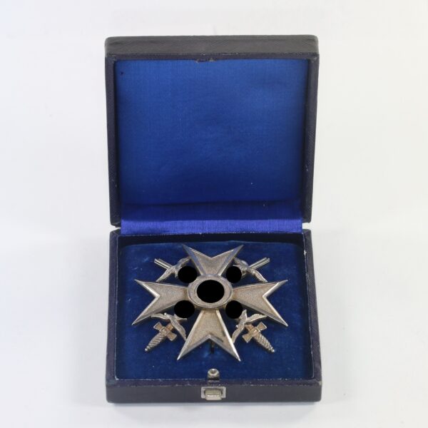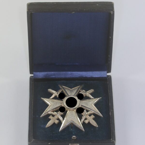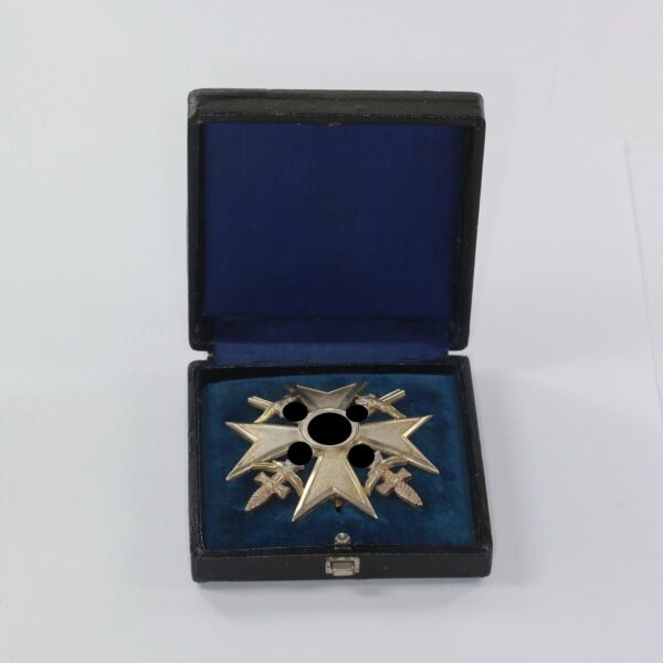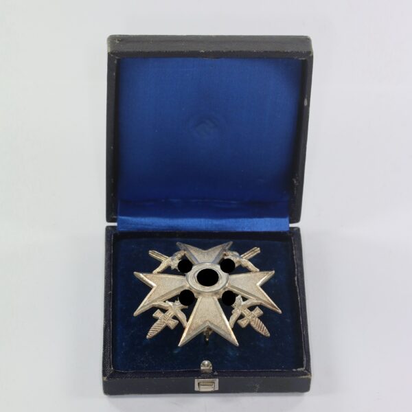 Spanienkreuz in Silber mit Schwertern, Hst. Meybauer (Wappen) 900, im Etui