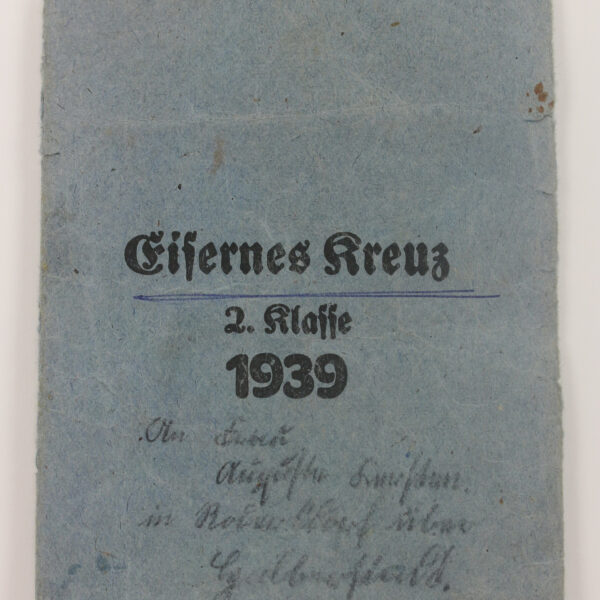 Verleihungstüte Eisernes Kreuz 2. Klasse 1939, Ernst L. Müller Pforzheim