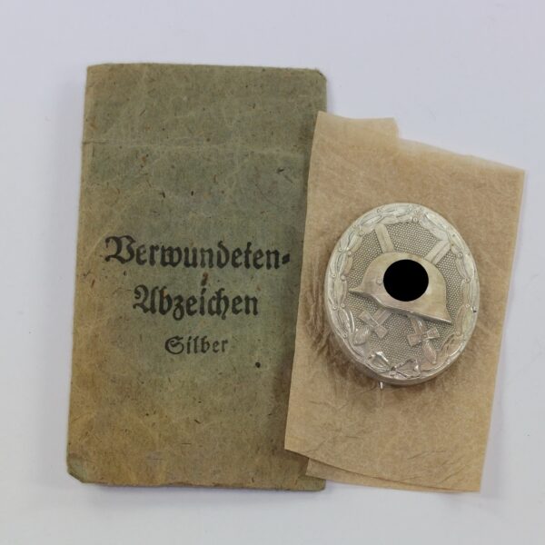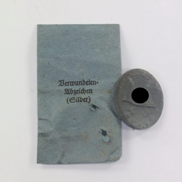 Verwundetenabzeichen in Silber, Hst. 127, in Verleihungstüte Moritz Hausch AG, Pforzheim