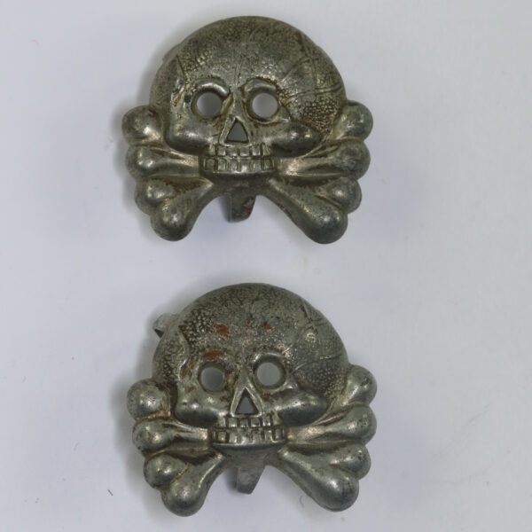Wehrmacht Heer, Paar Totenköpfe für die Kragenspiegel der Panzertruppe (Eisen)