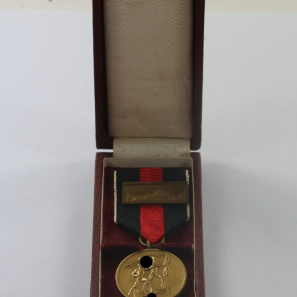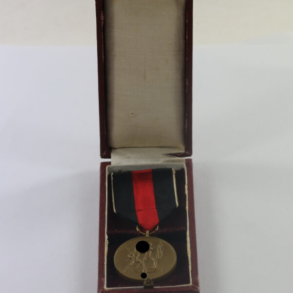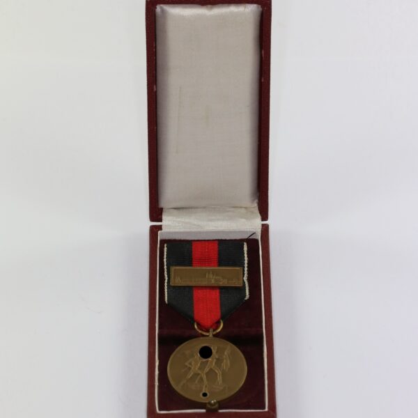 Anschlußmedaille Sudetenland (1. Oktober 1938), mit Spange Pragerburg, im Etui