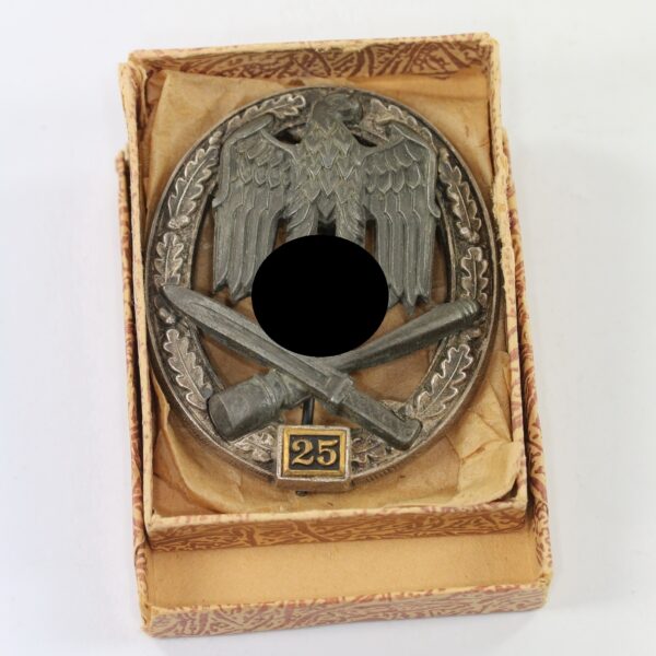 Allgemeines Sturmabzeichen mit Einsatzzahl 25, C.E. Juncker, in Verleihungsschachtel