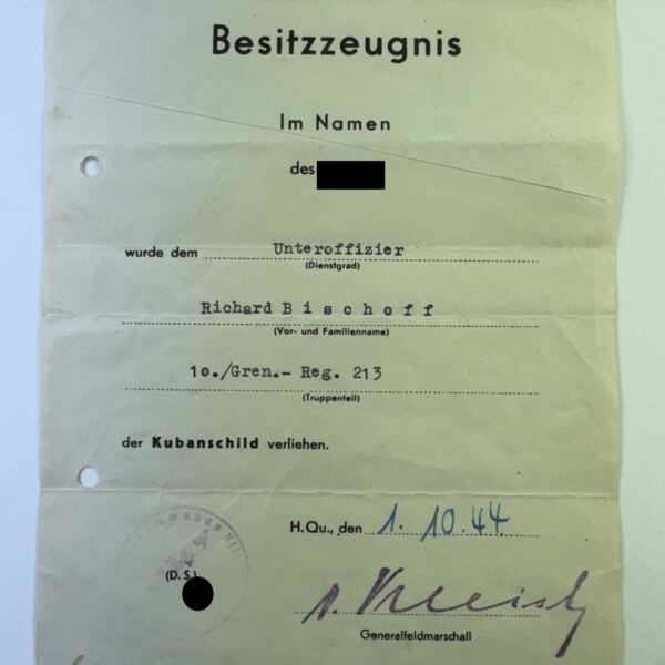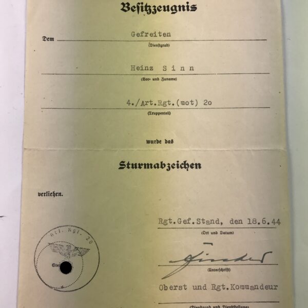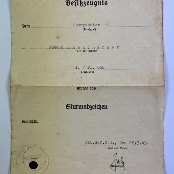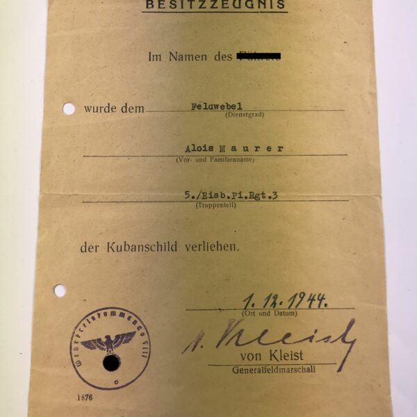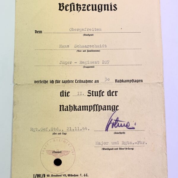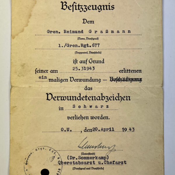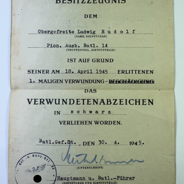 Besitzzeugnis Verwundetenabzeichen in Schwarz, 30.4.1945 (!)