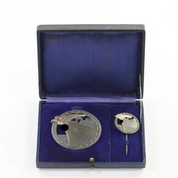Blockadebrecher Abzeichen, Hst. Schwerin Berlin, mit Halbminiatur, im Doppeletui