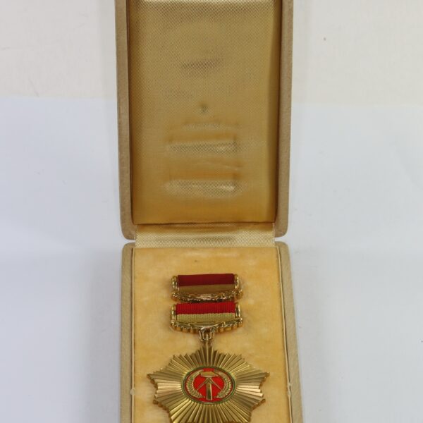 DDR, Vaterländische Verdienstorden (VVO) in Gold (900), im Etui mit Feldspange