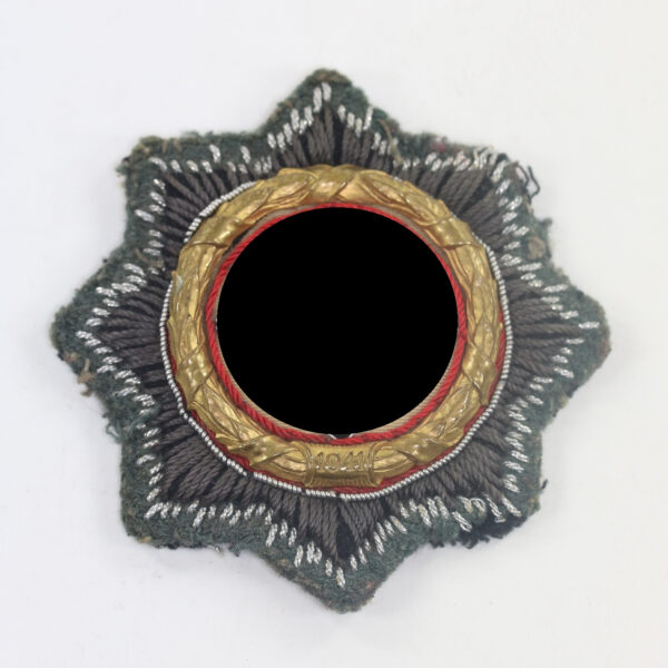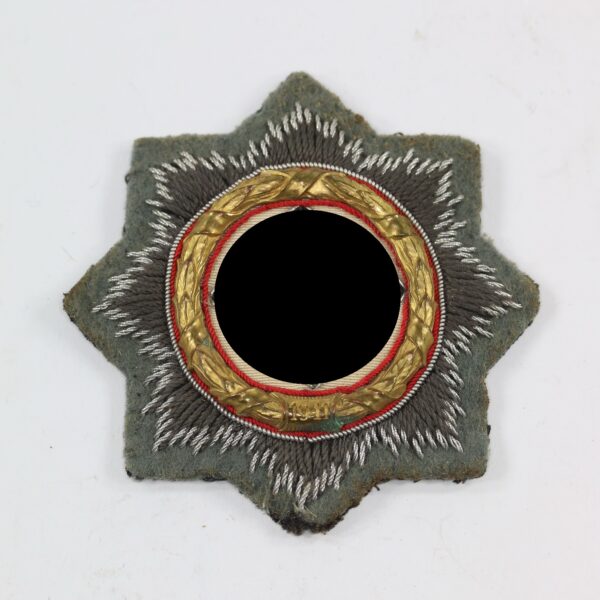 Deutsches Kreuz in Gold auf Heeresstoff, Hst. HS (Hermann Schmuck & Cie., Weißenburg)