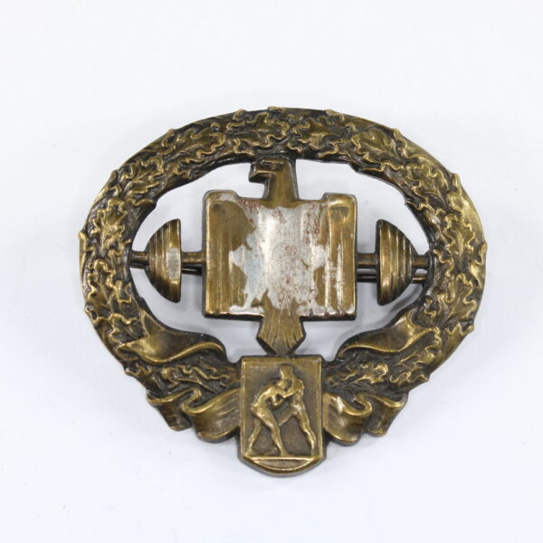 Deutsches Schwerathleten Sportabzeichen 2. Modell in Bronze, entnazifiziert (!)