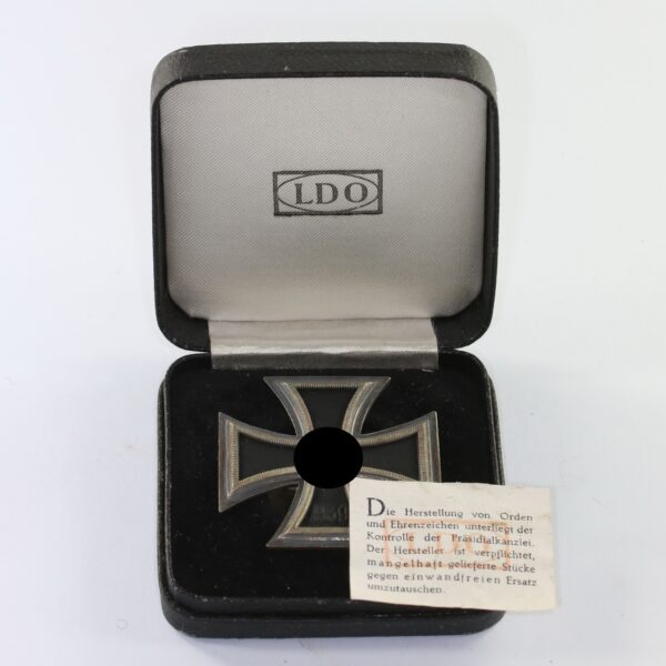 Eisernes Kreuz 1. Klasse 1939, Hst. L/59, an Schraubscheibe, im LDO Etui, mit LDO Zettel