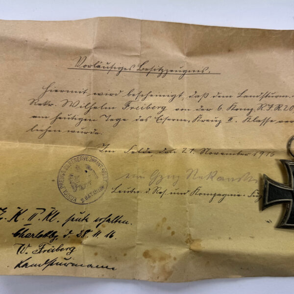 Eisernes Kreuz 2. Klasse 1914, Hst. KO + Vorläufiges Besitzzeugnis