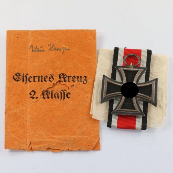 Eisernes Kreuz 2. Klasse 1939, Hst. 24, in kleiner (!), oranger (!) Verleihungstüte