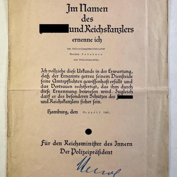 Ernnenungsurkunde Polizei, Unterschrift SS-Brigadführer Hans Julius Kehrl
