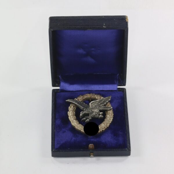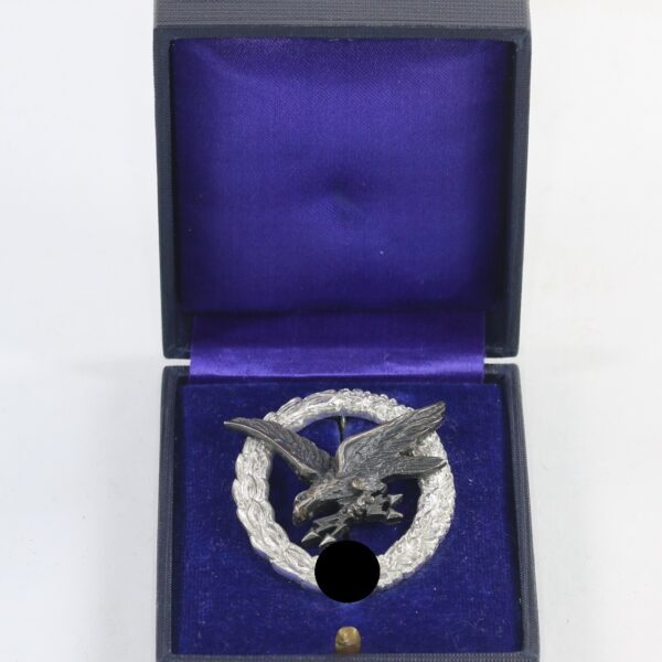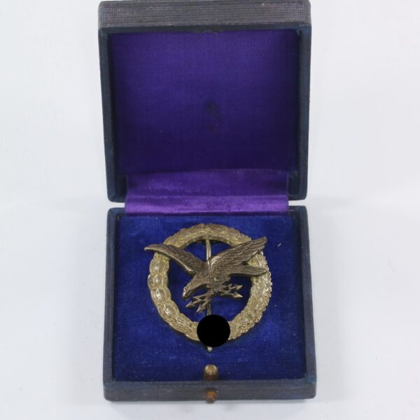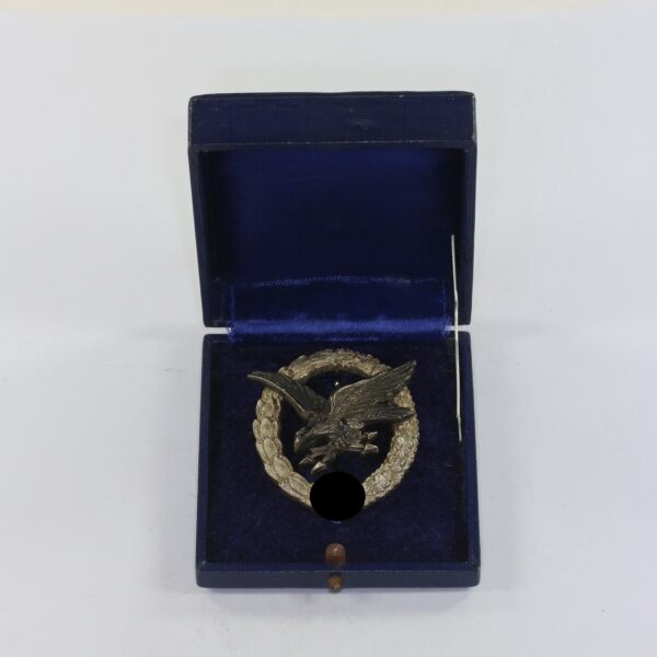 Fliegerschützenabzeichen der Luftwaffe mit Blitzbündel, Hst. C.E. Juncker Berlin S.W., im Etui