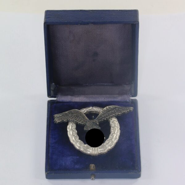 Flugzeugführerabzeichen der Luftwaffe, Hst. A und DRGM, Aluminium, im Etui