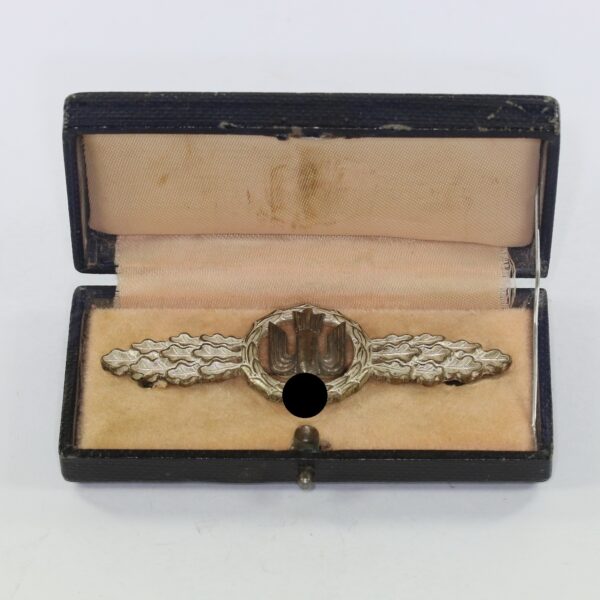 Frontflugspange für Kampfflieger in Silber. Hst.: G.H. Osang im Etui