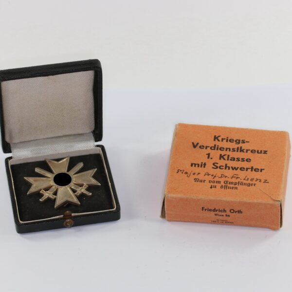 Kriegsverdienstkreuz 1. Klasse mit Schwertern, Hst. 1, im Etui, mit Trägergravur (!)