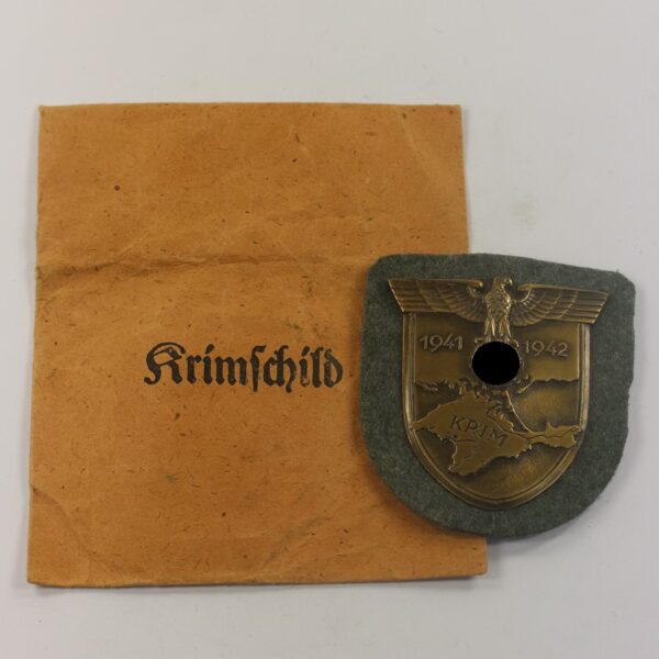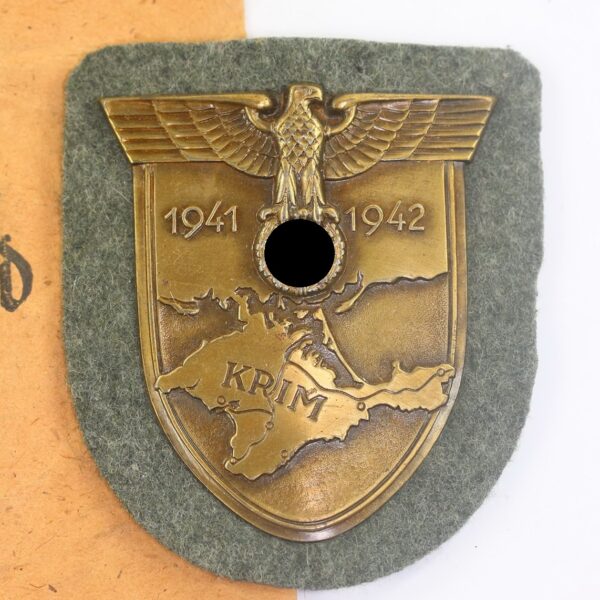 Krimschild auf Heeresstoff, in Verleihungstüte, Friedrich Orth